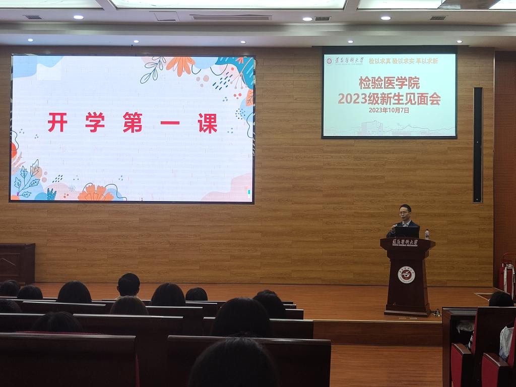 为深入贯彻党的教育方针,落实立德树人根本任务,指导和帮助2023级新生尽快了解和适应新环境、端正学习态度、明确学习目的、增强学习动力、科学规划学习生活,做好新生入学教育,检验医学院于2023年10月7日19:00在新蒲校区道德讲堂举办了2023级新生见面会。检验医学院党委书记周光润、检验医学院副院长闵迅博士出席本次活动,各科室负责人、辅导员、兼职班主任参与本次活动。本次活动由检验医学院办公室主任蔡亮容主持。