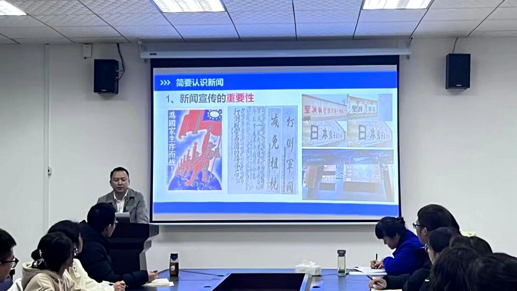 董老师以“新闻写作探讨”为题对与会人员进行了培训。培训伊始,董老师阐释了新闻与宣传两个概念的区别,突出强调了新闻宣传的重要性和必要性。随后,他在介绍新闻写作相关理论的基础上,结合自身多年从事新闻宣传工作的经验和业内典型案例,着重讲述了新闻写作的要领。最后,董老师梳理总结了新闻写作的日常注意事项,以便提高表达的准确性和行文的规范性。董老师授课风趣幽默,语言生动形象,时而引经据典,时而举例示范,妙语连珠,精彩纷呈,参训人员全程专注听讲,认真记录,积极互动。