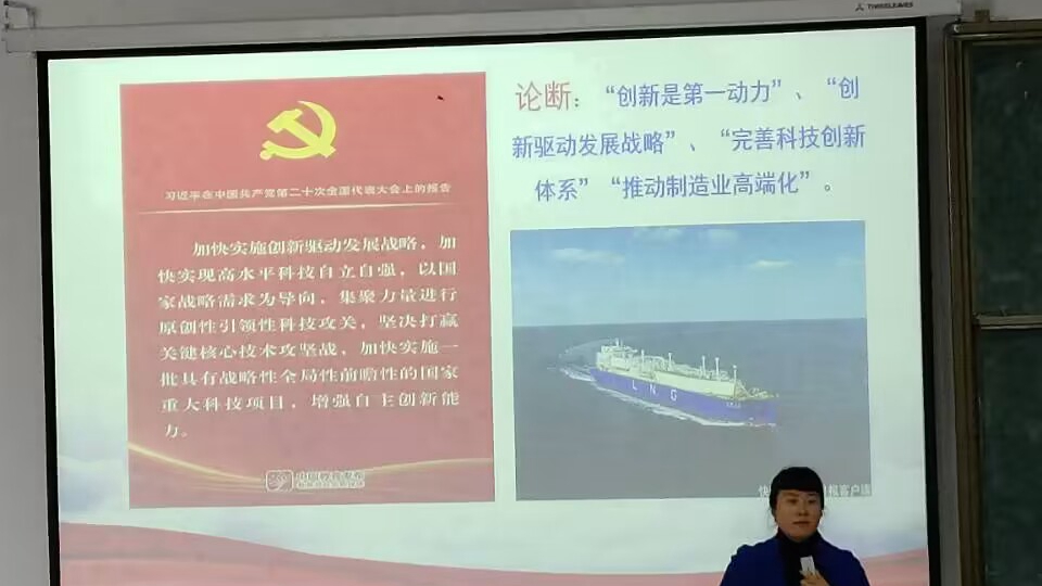 周书记以“从中国制造理解党的二十大报告重要论断”为题对同学们进行思想政治教育。周书记从现实着手,深入全面分析了国际形势与我国国情,结合我国制造业系统性优势、面临的机遇和挑战,向同学们形象地阐述了《党的二十大报告》中“创新是第一动力”“创新驱动发展战略”“完善科技创新体系”“推动制造业高端化”等重要论断,引导学生理解中国经济“形”稳“势”升,看准当前的“形”,看清长远的“势”,始终保持战略定力和发展信心、更好统筹发展和安全、持续巩固经济恢复向好态势、扎实推动高质量发展等国家战略。周书记还结合时事新闻与我国科技制造业的艰难发展历程,告诉同学们讲好中国故事的重要性和必要性。她向同学们强调,百年未有之大变局,需要青年一代统一思想、团结一心,紧紧团结在党中央周围,汇聚成一股战无不胜的磅礴力量。最后,周书记以讲好中国故事为核心,呼吁同学们自强不息,励精图治,再创辉煌。
