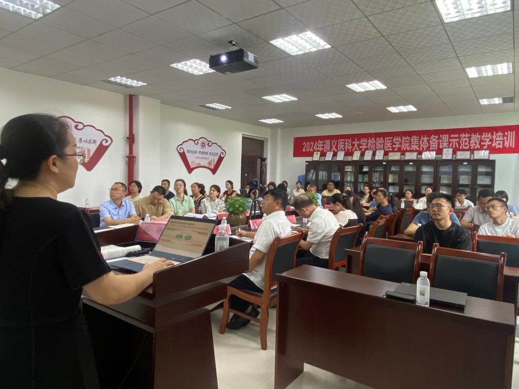 为充分发挥校内优质资源,营造有利教师可持续发展的良好环境,造就一支具有高尚师德、过硬业务素质、扎实教学技能、适应新时期教育教学发展需求的教师队伍,检验医学院于2024年7月18日下午开展检验教师集体备课示范教学培训,本次示范培训由临床生物化学检验教研室承担,全院教职工及省内10家实习基地教师近百人参加,培训会由检验医学院副院长闵迅主持。