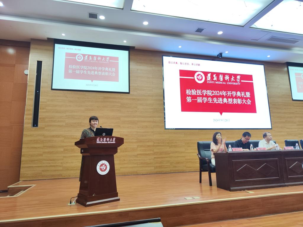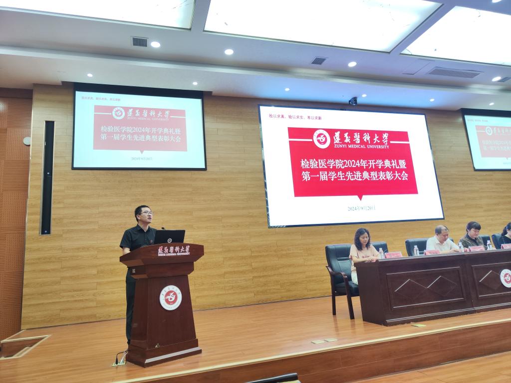 9月20日晚7点,检验医学院在新蒲校区人文楼报告厅召开2024年开学典礼暨2023-2024学年学生先进典型表彰大会。学院班子成员、内设机构负责同志、各教研室主任、高层次人才、兼职班主任和全体在校生参加了大会。本次大会由学院党委副书记罗治宇主持。