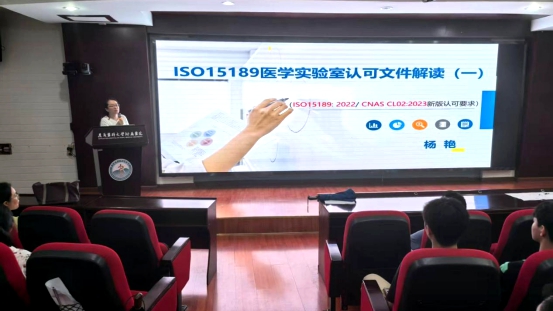 随后进入授课环节,医学检验科副主任兼质量主管杨艳教授、医学检验科主任闵迅教授、医学检验科副主任兼技术主管黄健教授,分别围绕《ISO15189医学实验室认可文件解读(一)》《原始样品的采集与处理及咨询服务》《即时检验(POCT)的质量管理与运行实践》《AI时代:检验人何去何从?》等相关专题内容,进行了精彩的授课。