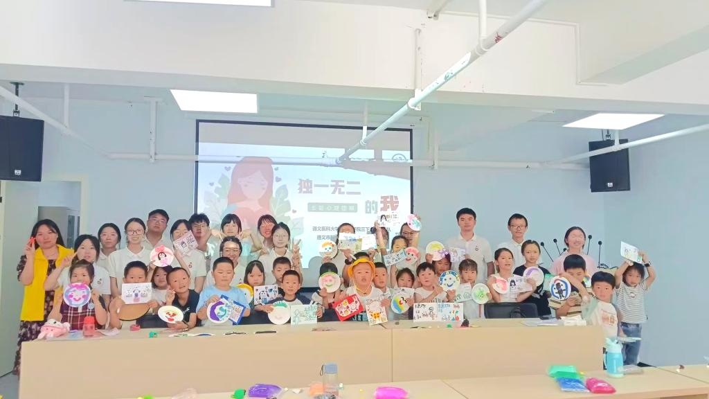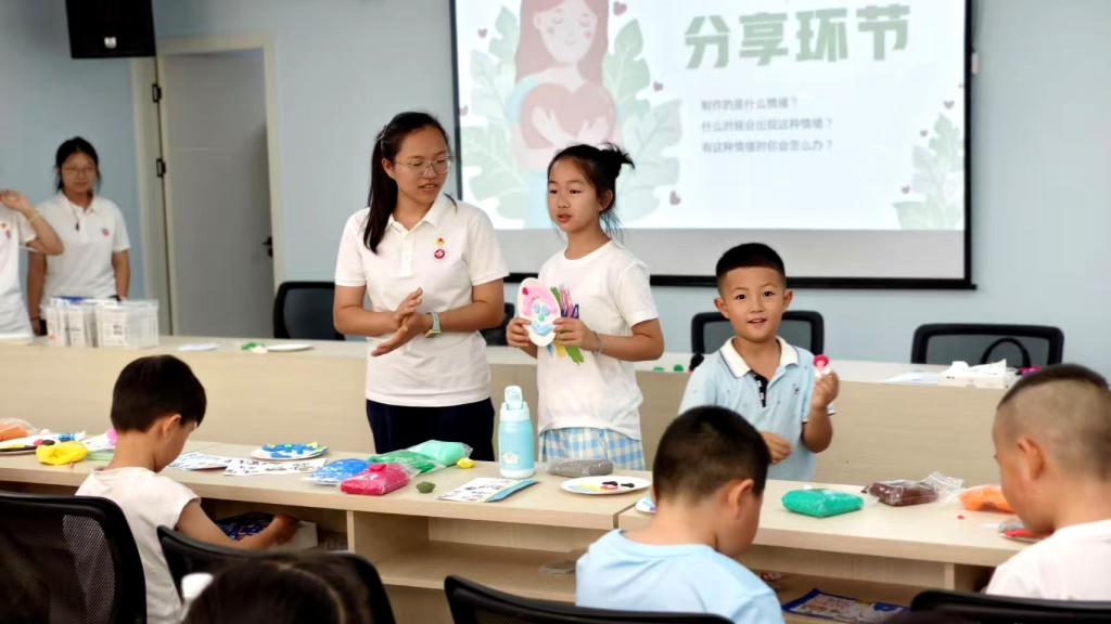 “看,这是我!一个快乐的、爱踢足球的我!”在“独一无二的我”自画像区域,孩子们用画笔和色彩自由地倾诉内心世界。而最吸睛的莫过于“情绪脸谱”创作工坊。在这里,愤怒可以用火红的黏土捏出来,忧郁化作静谧的蓝色形状,喜悦则跳跃成明快的黄色。当情景模拟遇到“情绪风暴”,实践队员化身温柔向导,引导孩子们学习用深呼吸稳住“小船”,用真诚倾诉扬起风帆,勇敢地做自己情绪的“小船长”。现场暖意融融,孩子们在安全、包容的氛围中练习着识别、表达和管理自己的情绪,学习与自己温柔相处。