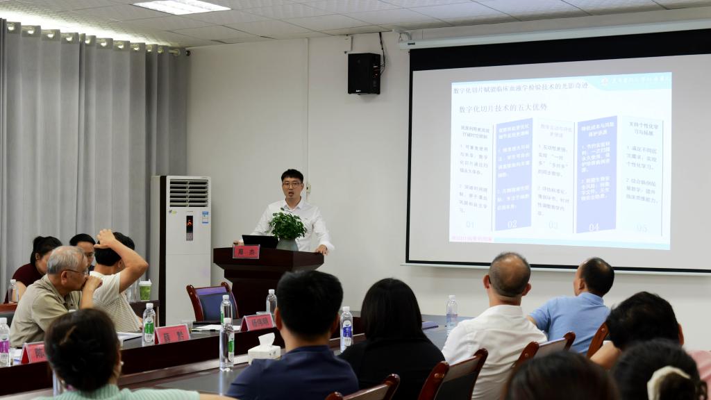 骨干教师周杰聚焦“数字化切片赋能临床血液学检验技术的光影奇迹”,分享了该技术在血液学检验教学中的创新应用与显著成效。罗华、陈双华专家在点评中肯定了内容的创新性与实践性,指出其充分展现了教研室的教学探索成果。