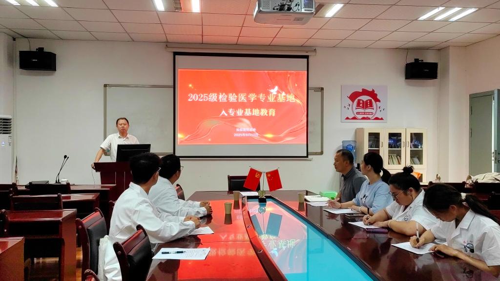 9月10日下午14:40,遵义医科大学附属医院检验医学专业基地在门诊六楼会议室召开了2025年入专业基地教育暨规培生管理工作会议。基地负责人、教学主任、教学秘书、指导老师、带教老师以及全体规培学员参加了此次会议。会议由检验科主任、基地负责人闵迅教授主持。
