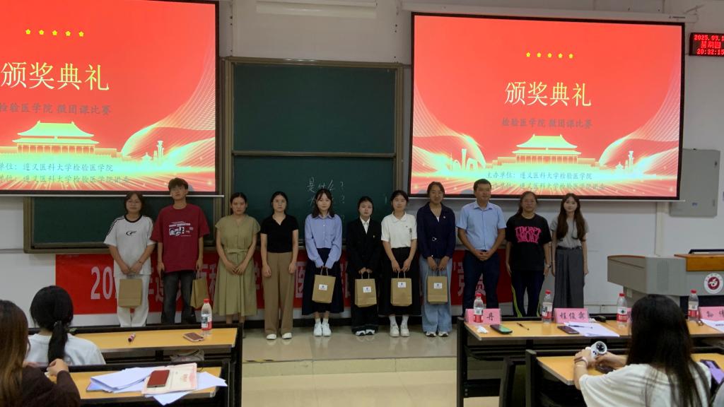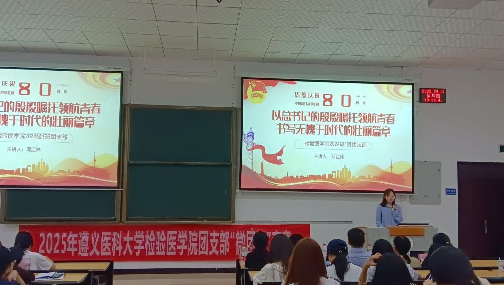 为深入学习贯彻习近平新时代中国特色社会主义思想,充分发挥共青团在高校学生思想政治工作中的引领作用,检验医学院团委于2025年9月11日晚7点,在新蒲校区第八阶梯教室隆重举办了团支部“微团课”比赛。出席此次活动的有检验医学院党委副书记罗治宇、马克思主义学院程俊霖博士、专职辅导员孙倩及各班学生代表。