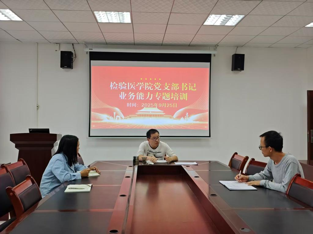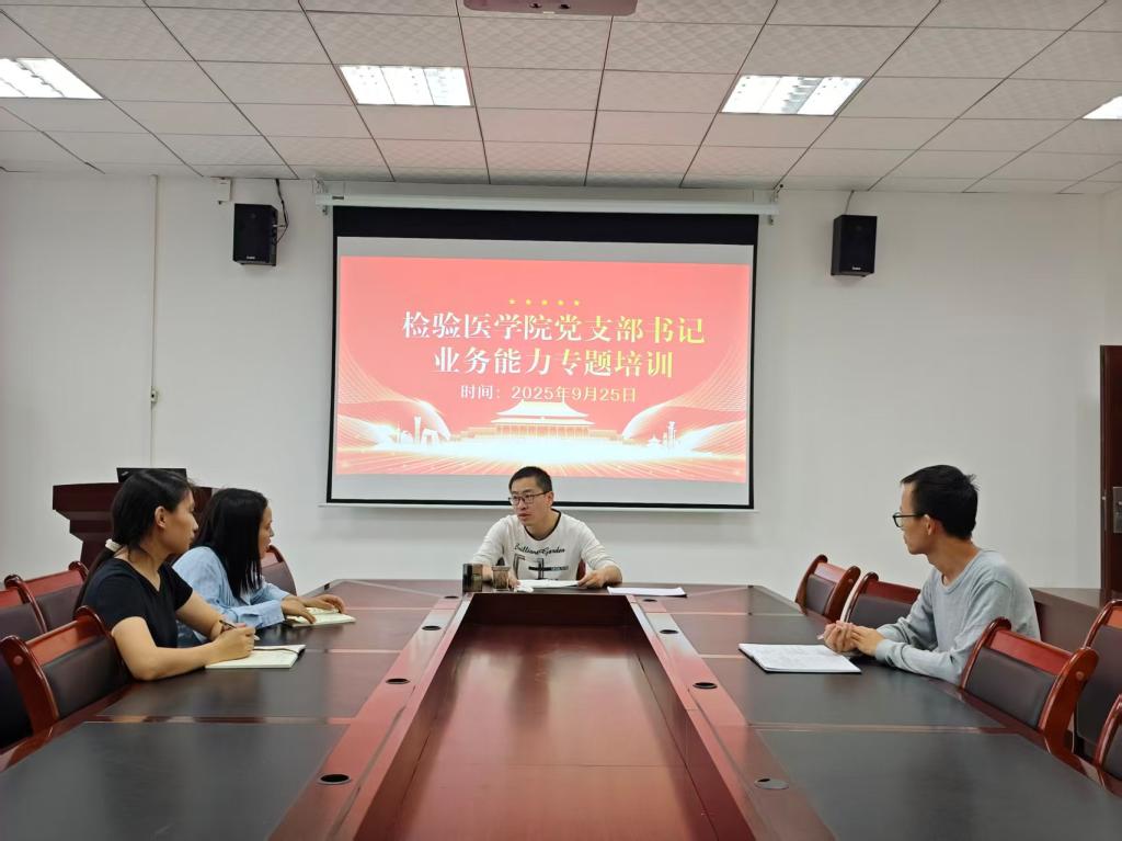 为深入学习贯彻党的二十大精神和二十届三中全会精神,落实新时代党的建设总要求,进一步提升基层党组织的政治功能和组织功能,针对当前学生党支部书记队伍在党建实务和政策把握等方面存在的短板,检验医学院党委于9月25日在学院会议室举办了党支部书记业务能力专题培训。本次培训由检验医学院党委副书记罗治宇主讲,各学生党支部书记及学院团委负责人参加了培训。
