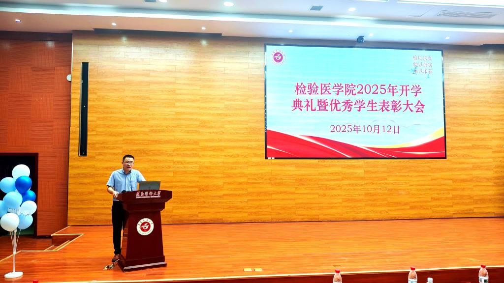 10月12日晚7时,检验医学院在新蒲校区人文楼报告厅隆重举行2025年开学典礼暨优秀学生表彰大会。学院领导班子成员、内设机构负责人、各教研室主任、专兼职辅导员以及全体在校学生共同参会。