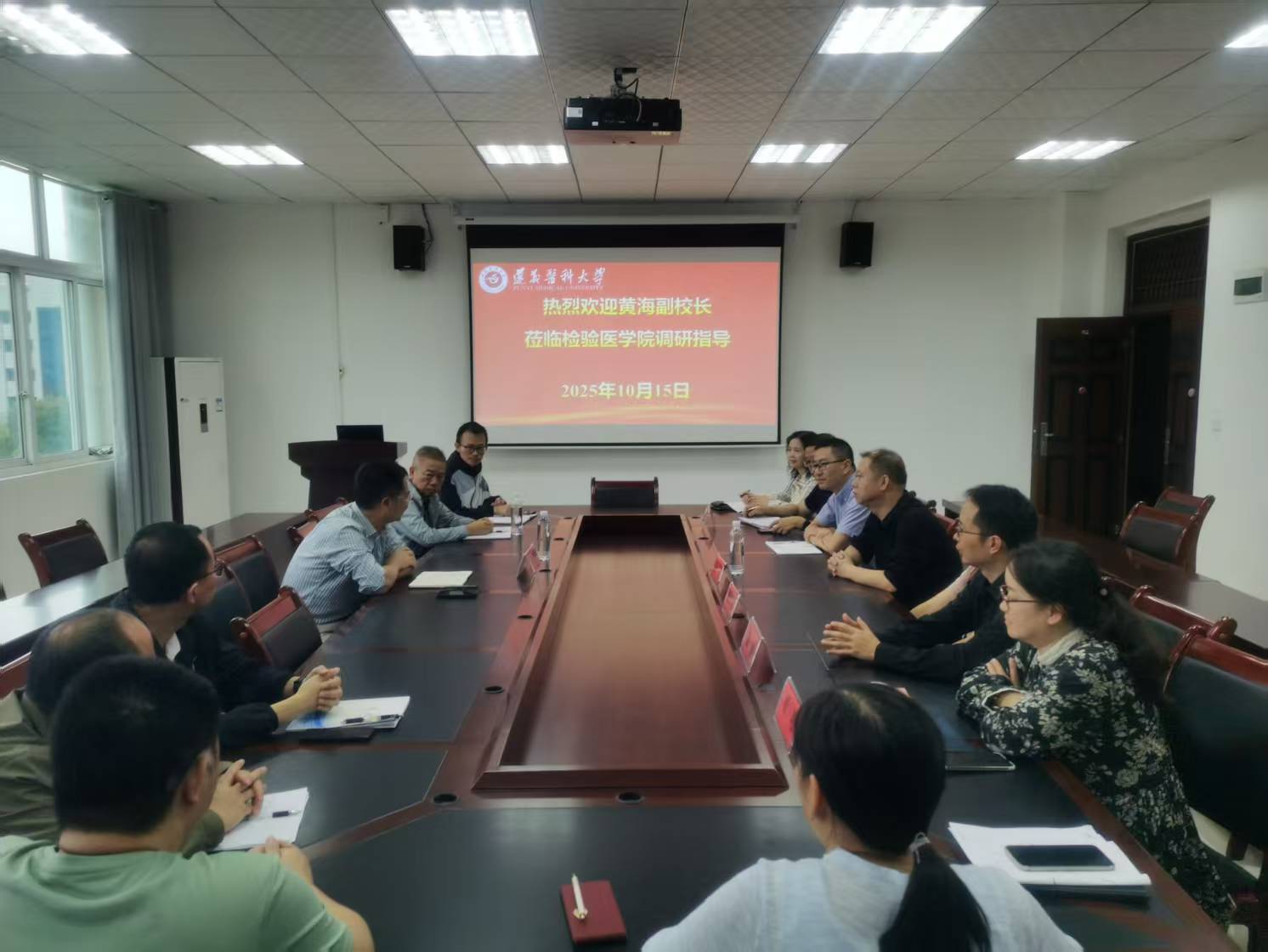 2025年10 月 15 日,学校副校长黄海莅临检验医学院调研,并与参会人员进行座谈。学院班子成员、各科室负责人、教研室主任、副主任、学生及教学管理人员参加。会议由学院副院长闵迅博士主持。