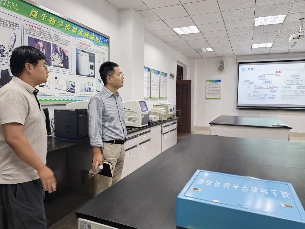 调研中,黄海副校长听取了学院的工作汇报,全面了解学院教学、科研、临床工作的开展情况,闵迅副院长围绕国家级一流专业平台建设、人才培养、获批的基金项目、取得的科研成果等方面进行重点介绍,以及在推动省级重点实验室建设方面存在的困难和亟待解决问题向校领导做出汇报。参会人员就科技平台建设、人才引进与培养、教学高质量发展等问题展开交流。
