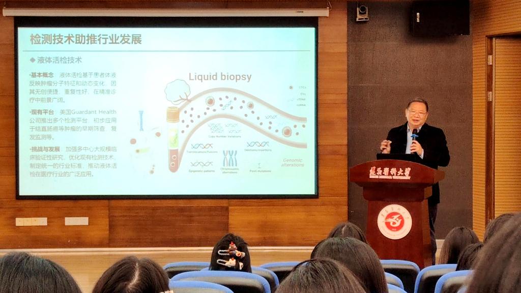 10月29日下午2:40,检验医学院特邀学校签约的“候鸟人才”鄢盛恺教授,在学校图书馆一楼多功能厅为医学检验技术专业本科生带来了一场内容丰富、视角前沿的专题讲座。