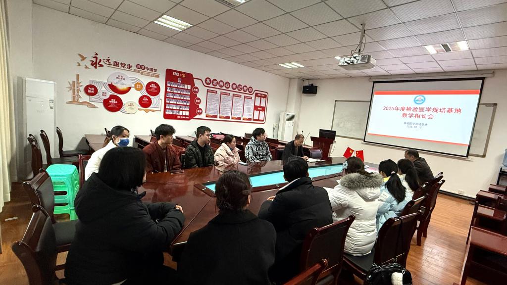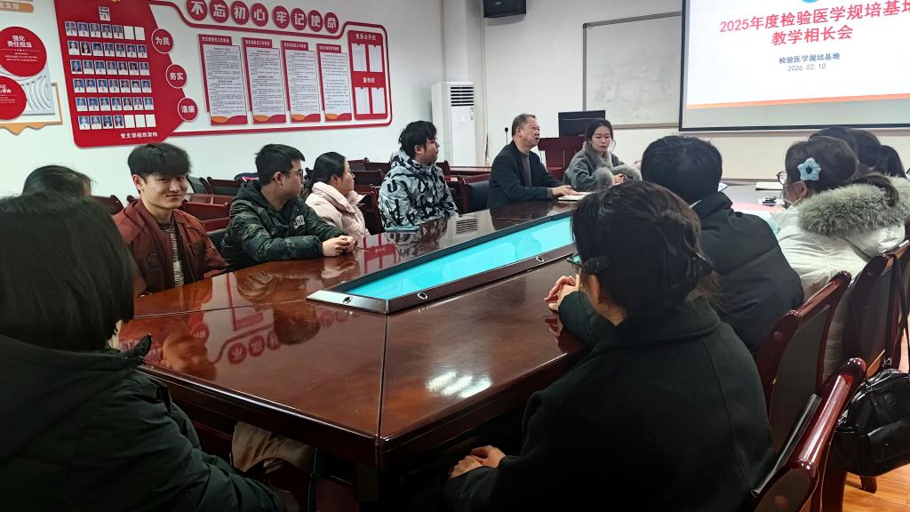 2026年2月10日,检验医学规培基地组织召开了年度教学相长会。基地负责人闵迅教授、教学主任、教学秘书以及全体在培学员共同参加了此次会议。会议围绕过去一年的工作学习回顾、取得的成绩、近期工作安排及学员发展支持等多个主题展开了深入交流与讨论。