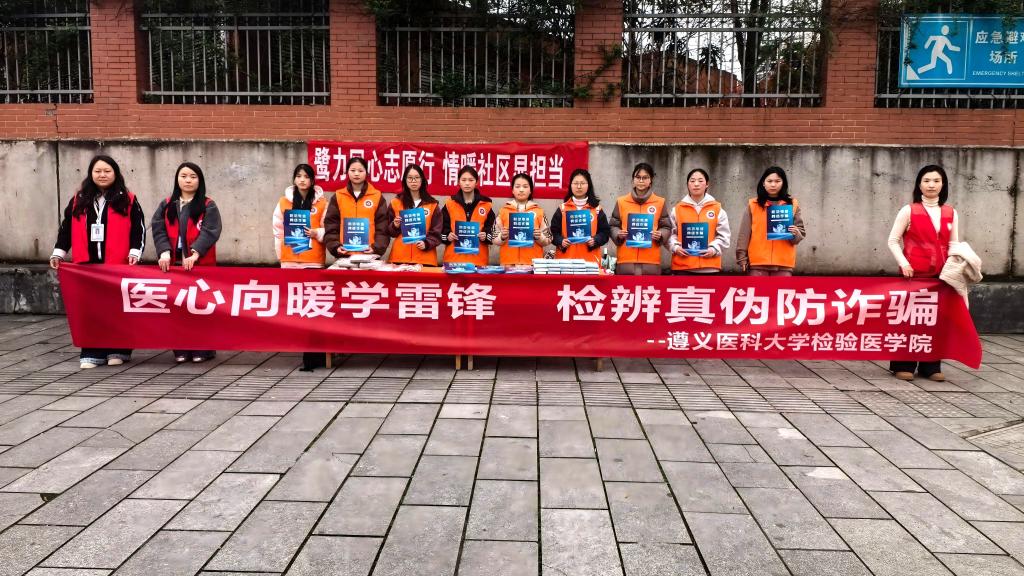 为进一步提升社区居民防范电信网络诈骗意识,筑牢全民反诈安全防线,3月28日下午,遵义医科大学检验医学院团委、关工委组织大学生志愿者联合新蒲新区新中街道白鹭湖社区,开展以“医心向暖学雷锋检辨真伪防诈骗”为主题的反诈志愿服务宣传活动。