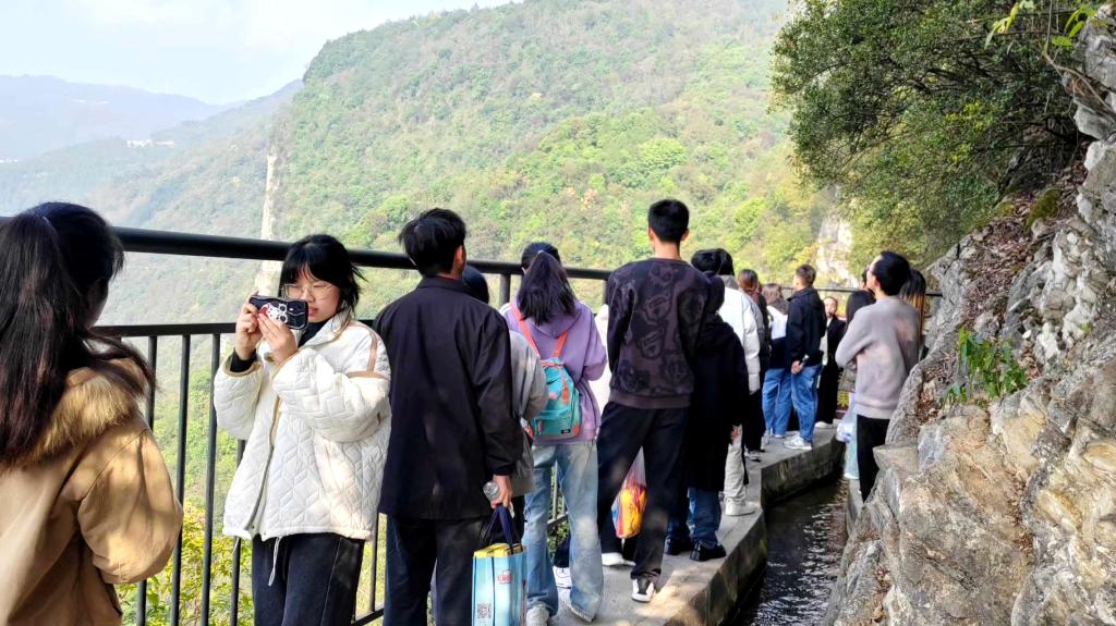 当天,全体党员参观了大发渠及大发渠陈列馆。在悬崖绝壁之上,切身感受到了“绕三重大山,过三道绝壁,穿三道险崖”的大发渠之险峻;在大发渠党性教育陈列馆,通过讲解员的深入讲解,大家对大发渠的由来和建设有了更清楚的了解,对黄大发同志因为修渠顾不上赶回家见女儿最后一面的故事感到动容。“山高石头多,出门就爬坡。一年四季苞谷沙,过年才有米汤喝。”一首当地民谣唱出了当年村民的生活艰苦,所有人无不惊叹黄大发同志的苦干实干,一心为民,百折不挠改变家乡贫苦的坚定信念。
